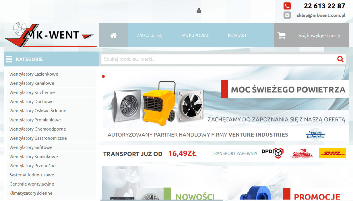 Jesteśmy hurtownią wentylacyjną działającą na rynku od 1985r. Naszą domeną jest wysoka jakość produktów oraz konkurencyjność cen. W swojej ofercie posiadamy sprzęt czołowych światowych marek.
